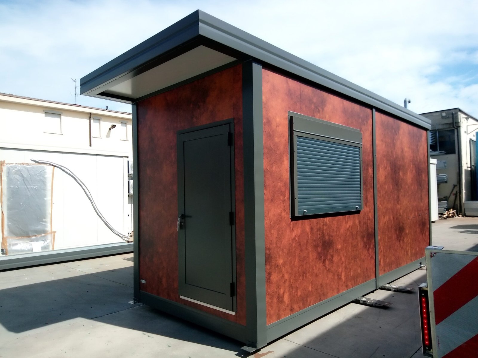 Il vertice della prefabbricazione. Il Monoblocco Portineria "Architectural" (590 x 343 cm) è una struttura semi-permanente progettata per ingressi di prestigio e comfort totale. Caratterizzata da una finitura esterna effetto Corten e lattonerie Grigio Antracite.