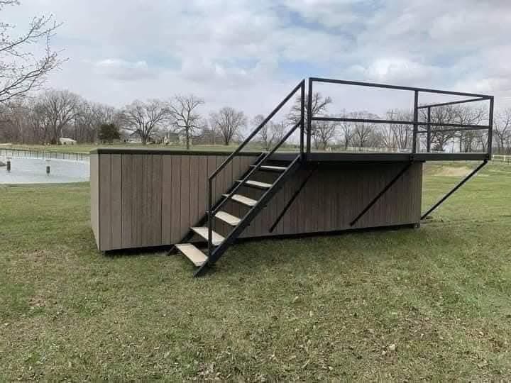A evolução dos assentos para eventos. Esta estrutura inovadora transforma um Contentor High Cube de 40 pés (12 metros) numa tribuna coberta segura para 74 espectadores. Projetada como solução “chave na mão”, oferece uma montagem rápida sem a complexidade dos andaimes tradicionais.