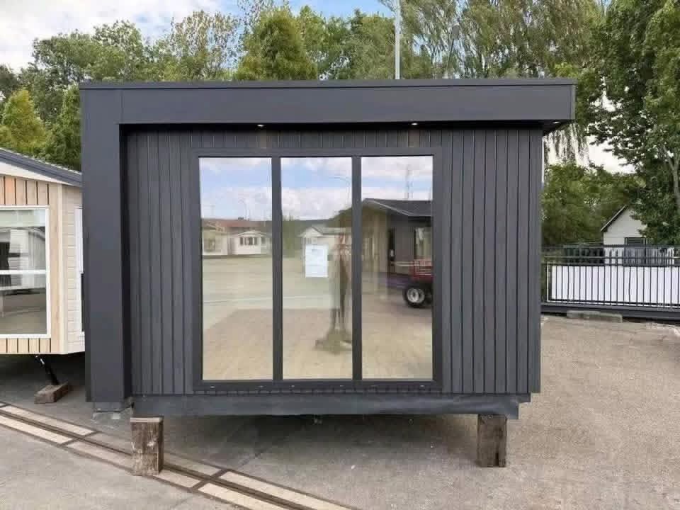 🏡 Contentor T2 Overson Wood – Chalé Modular Premium 11,50 × 4,00 m O Contentor T2 Overson Wood é um chalé modular de alta qualidade, concebido para oferecer conforto, eficiência energética e um design moderno. Com dimensões de 11,50 metros de comprimento por 4,00 metros de largura, proporciona uma área interior espaçosa e bem distribuída, ideal para utilização durante todo o ano. Este modelo dispõe de 2 quartos confortáveis, uma sala ampla e luminosa, uma cozinha totalmente equipada e uma casa de banho moderna e funcional. A construção inclui isolamento térmico reforçado, janelas com vidros duplos e aquecimento de pavimento, garantindo um elevado nível de conforto em todas as estações. O revestimento exterior em PVC de baixa manutenção assegura durabilidade e resistência, enquanto os acabamentos interiores oferecem um ambiente contemporâneo e acolhedor. 👉 Uma solução ideal como residência principal, casa de férias ou investimento para arrendamento, pronta a habitar e de instalação rápida.