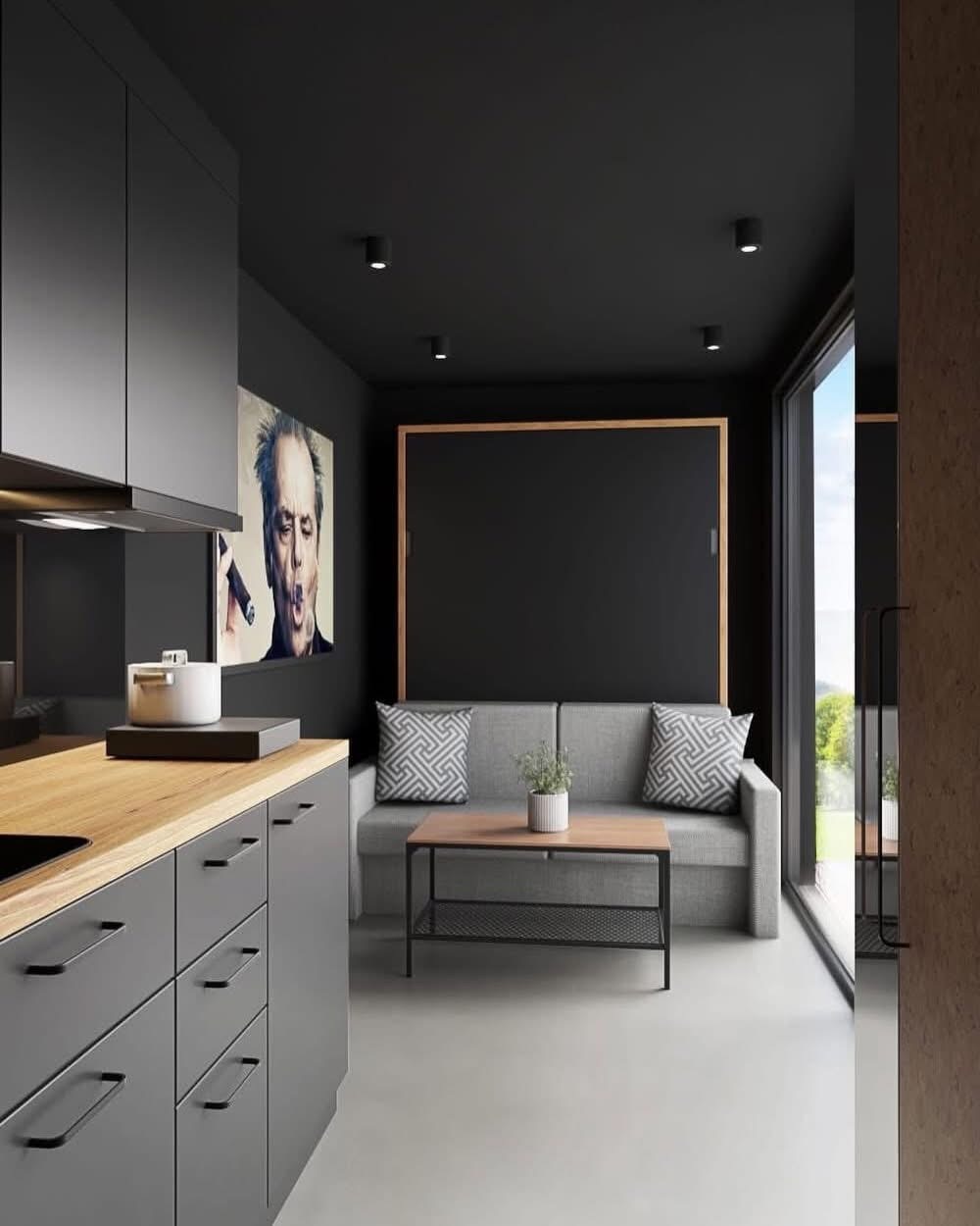 URBAN MINI 4.6 é um módulo compacto com design premium, pensado para oferecer o máximo conforto num espaço totalmente otimizado de 11,3 m². Com dimensões de 4,65 m x 2,44 m, combina funcionalidade, modernidade e elegância. O interior em preto mate cria um ambiente contemporâneo e sofisticado, enquanto a grande porta de vidro garante excelente luminosidade natural.
