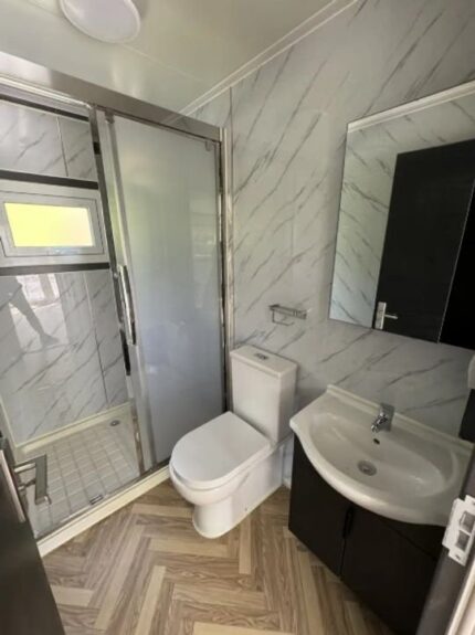 Solução habitacional “Chaves na Mão” de alta eficiência. Esta Casa Container Prefabricada de 20 pés High Cube (2,90m de altura) une design moderno e segurança estrutural. Construída com estrutura em aço Q235B e paredes em painéis sandwich em Lana de Rocha de 75mm para um isolamento termoacústico superior.
