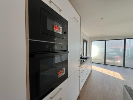 Os interiores são projetados para impressionar: ampla porta de correr envidraçada, cozinha de design bicolor e casa de banho com acabamentos efeito mármore. Perfeitamente isolada e aquecida para viver o conforto em todas as estações.