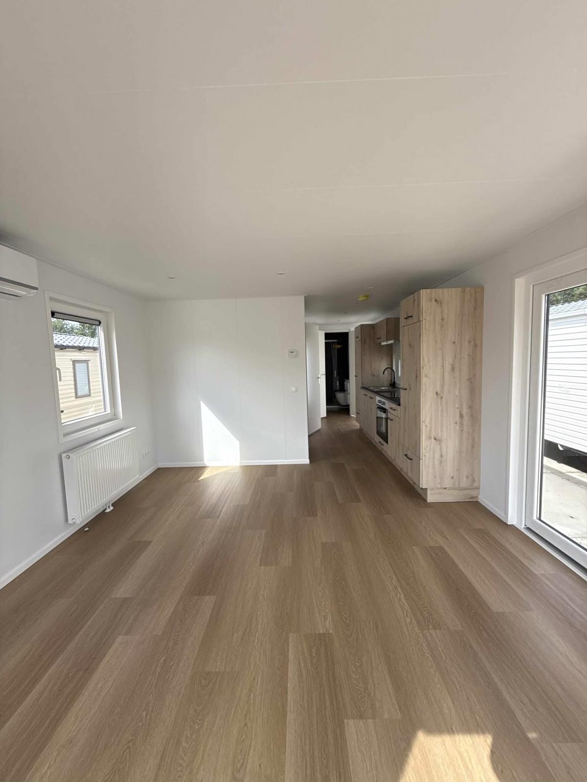 Chega completamente equipada com uma cozinha em L moderna, casa de banho com chuveiro de efeito chuva e acabamentos de qualidade. Graças ao isolamento termoacústico avançado e à caixilharia em PVC, é a solução ideal para viver todo o ano.