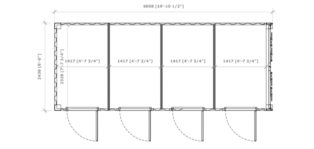 Massimizza la rendita, dividi lo spazio. Il Container 20 Piedi High Cube “Multibox” a 4 Porte è la soluzione definitiva per il settore del Self Storage e per la gestione logistica avanzata. Un singolo container standard da 6 metri, suddiviso in 4 scomparti separati e indipendenti.
