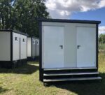 Contentor Sanitário 3x2m com Tanque de Efluentes – Entrada Dupla (WC + Duche) – Isolamento 80mm