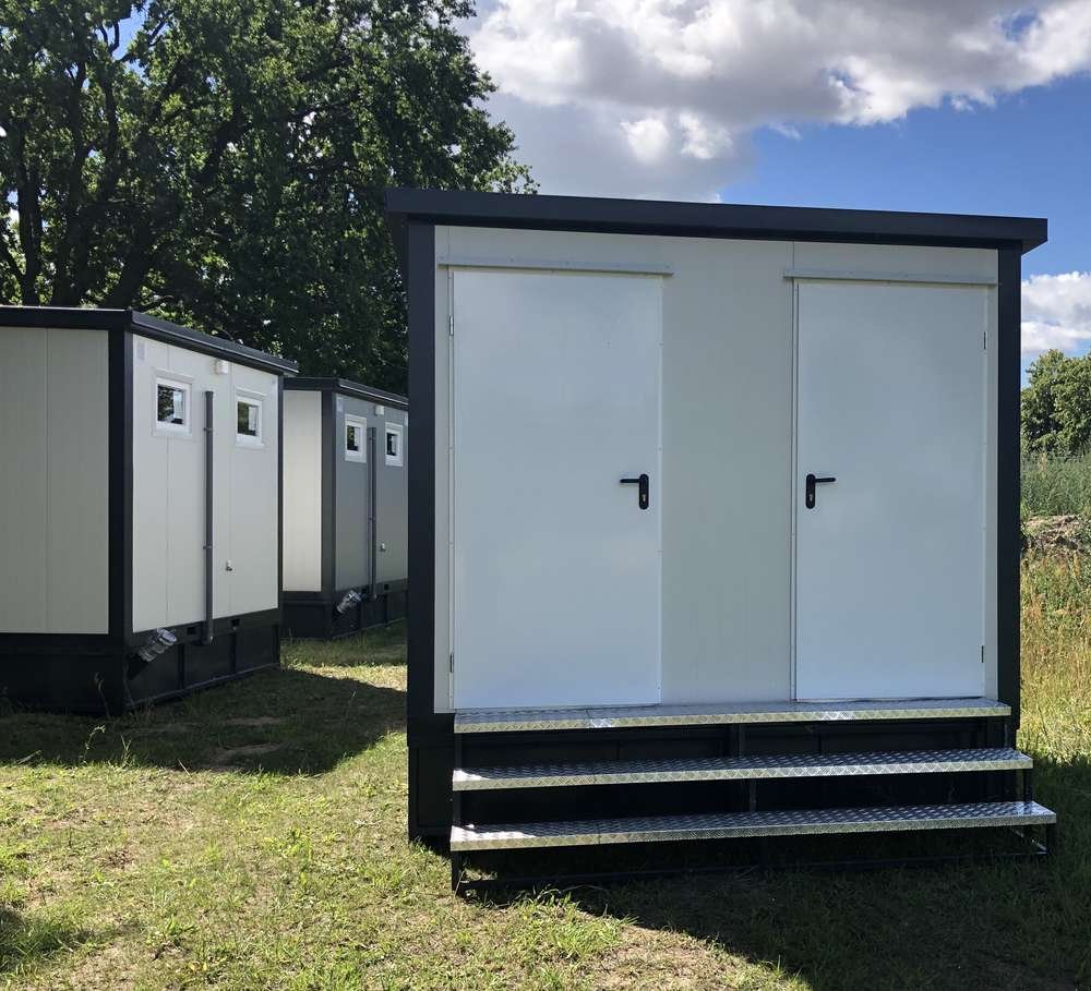 La soluzione sanitaria completa e indipendente. Questo container da 3×2 metri si distingue per la presenza di un serbatoio di raccolta acque nere/grigie integrato nel basamento, rendendolo ideale per aree prive di fognatura immediata.