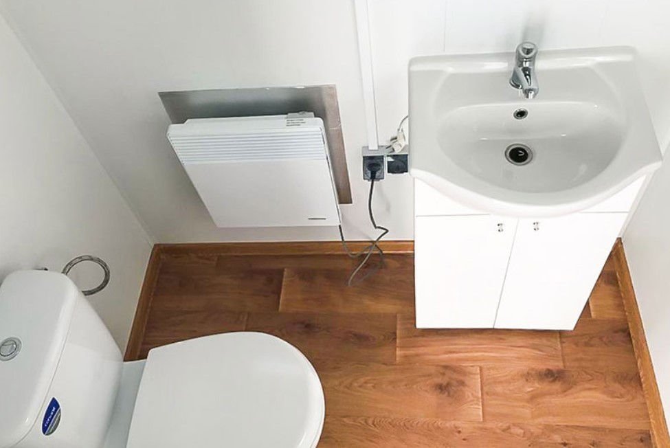 O módulo, dadas as dimensões (largura 4,90m), é geralmente montado no local ou transportado como transporte excecional (ou em dois módulos para acoplar). Requer uma laje de cimento. Pronto a usar assim que conectado às redes.