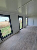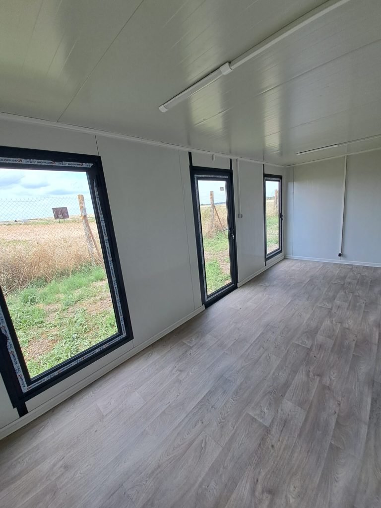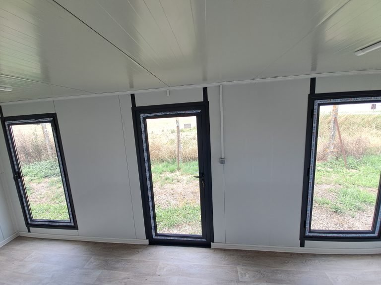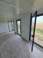 La struttura è perfettamente coibentata (Pareti 50mm) e rifinita internamente con pavimento in PVC effetto legno e infissi in alluminio satinato. Impianto elettrico LED incluso.