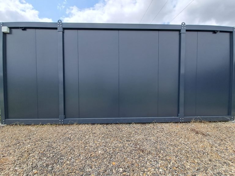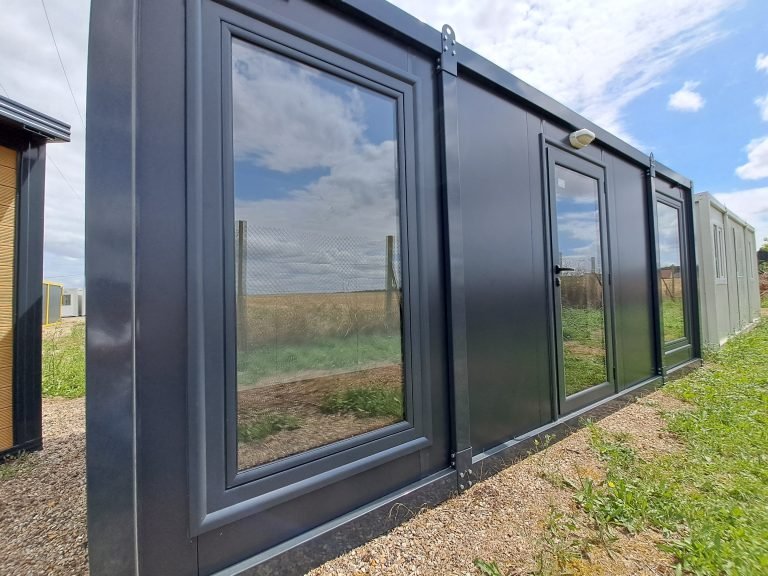 Módulo Pré-fabricado 15m² “Design” (6×2,5m) – Escritório Envídraçado Antracite (Isolado)