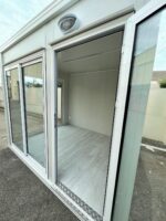 O Módulo Pré-fabricado de 7 m² sem instalações sanitárias da Brusato Container é uma estrutura versátil e moderna. Graças ao design amplamente envidraçado, elimina a sensação de clausura típica dos pequenos módulos, criando um ambiente de trabalho luminoso e acolhedor.