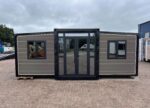 - Design Dobrável Inteligente: Viaja como um contentor padrão em camião, mas triplica a sua largura uma vez posicionada.