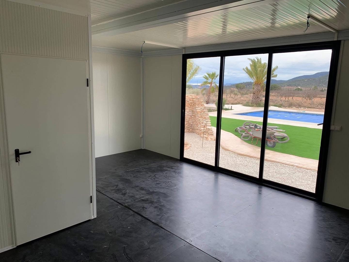Equipado com uma grande porta de vidro panorâmica que proporciona excelente luminosidade natural e ar-condicionado já instalado, este módulo é ideal como escritório, estúdio, alojamento temporário, espaço comercial ou investimento para arrendamento.